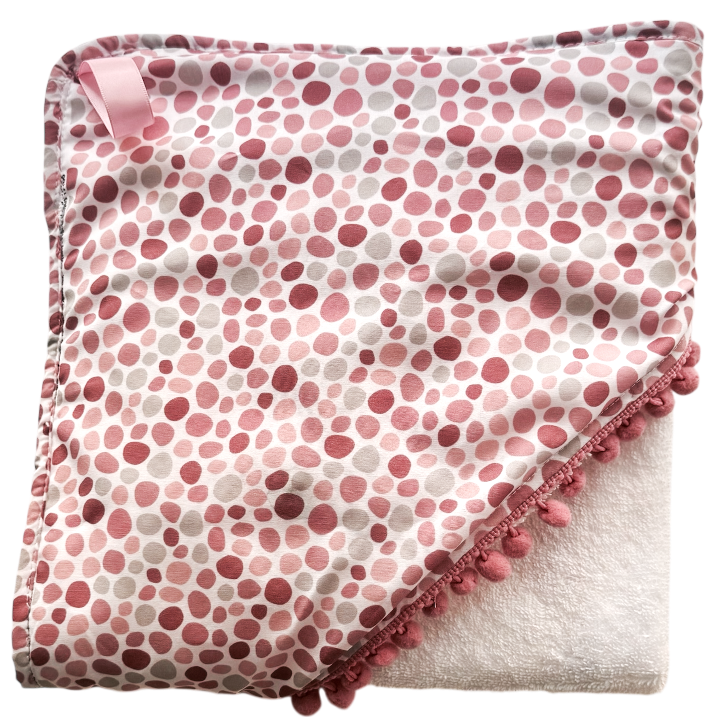 Είναι διπλής όψεως, πολύ μαλακά. Διαθέτει κουκούλα ώστε να κρατάει ζεστό μετά το μπάνιο το κεφαλάκι του μωρού σας.