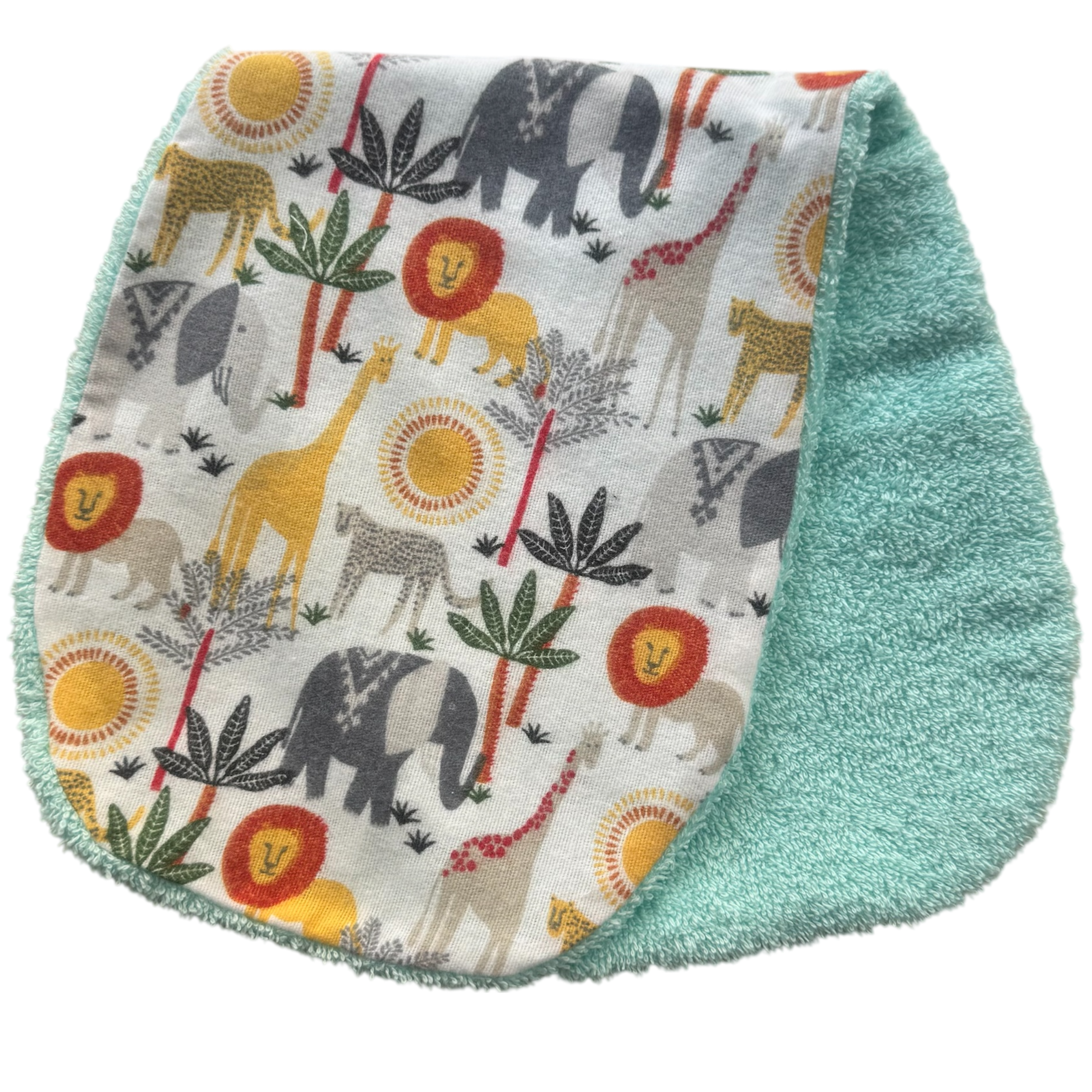 Απαλό, υπεραπορροφητικό. Είναι ραμμένο 100% στο χέρι με με 100% υψηλής  ποιότητας βαμβακερό ύφασμα από την πλευρά  και πετσέτα  από την άλλη. Μπορεί να χρησιμοποιηθούν ως πανάκι ρεψίματος, για να σκουπίζετε το μωράκι σας όταν τρώει, για γουλίτσες, σαλάκια.