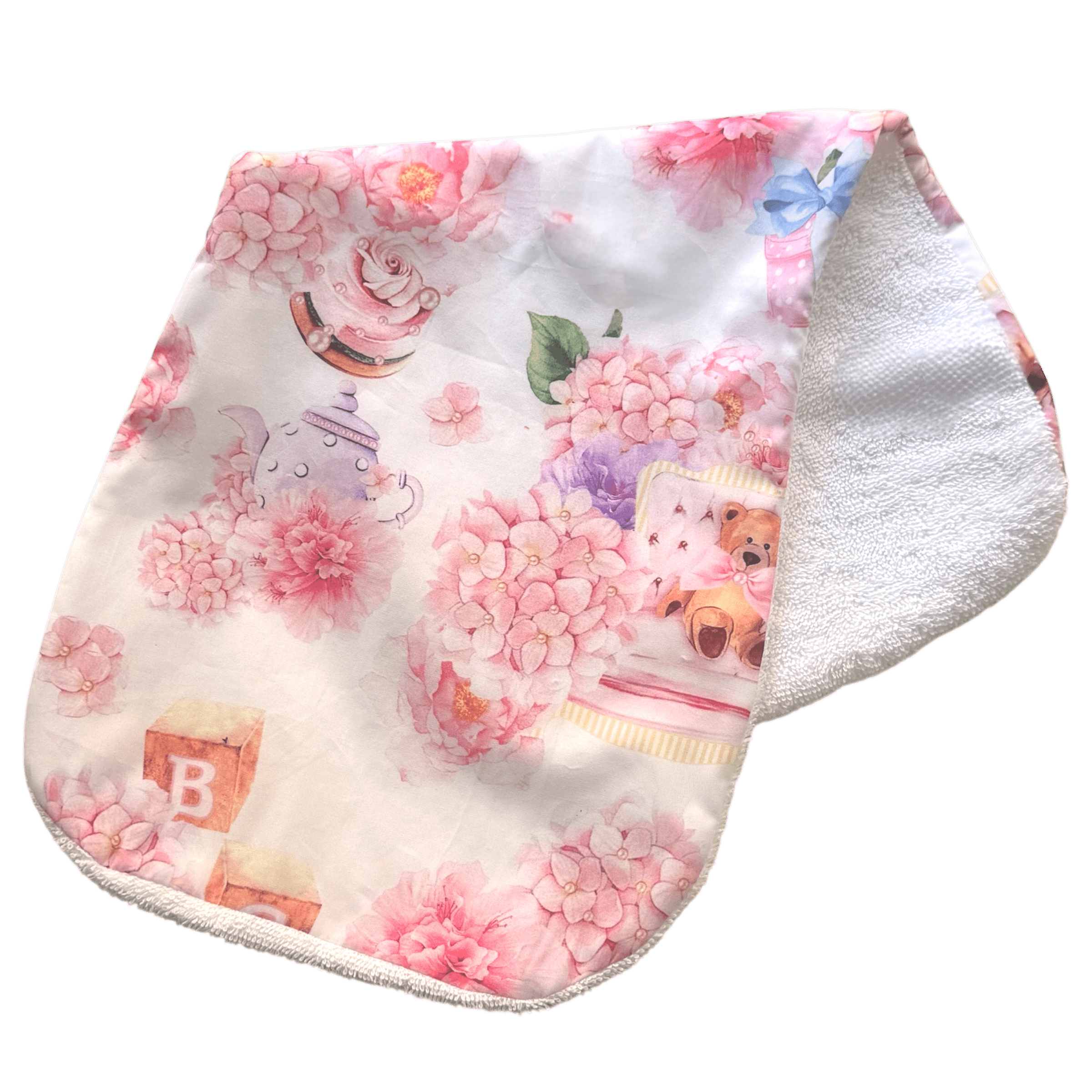 Απαλό, υπεραπορροφητικό. Είναι ραμμένο 100% στο χέρι με με 100% υψηλής  ποιότητας βαμβακερό ύφασμα από την πλευρά  και πετσέτα  από την άλλη. Μπορεί να χρησιμοποιηθούν ως πανάκι ρεψίματος, για να σκουπίζετε το μωράκι σας όταν τρώει, για γουλίτσες, σαλάκια.
